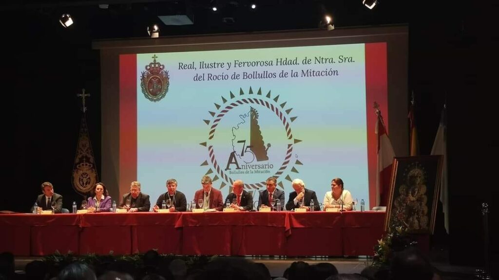 Asamblea Comarcal de las Hermandades de Sevilla, siempre es la más complicada de las tres que hacemos para preparar la Romería. No en vano, son 63 hermandades filiales y varias asociaciones rocieras las que hacen este camino al Rocío. En un espíritu de fraternidad se ha desarrollado este encuentro anual que plantea novedades importantes para la Romería de 2023.La que hoy hemos celebrado en Bollullos de la Mitación, ha servido también para celebrar el 75 aniversario fundacional de su Hermandad del Rocío, a la que hemos vuelto a felicitar.