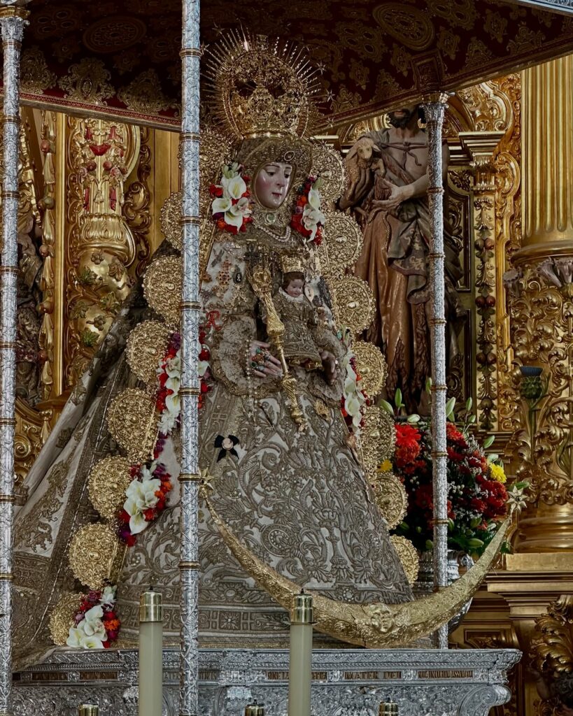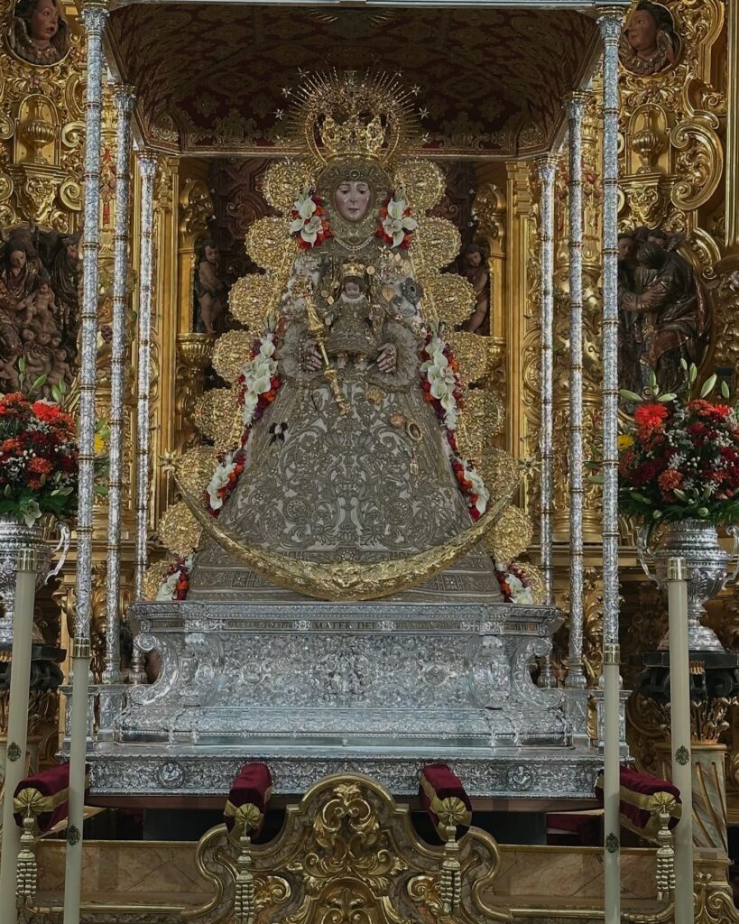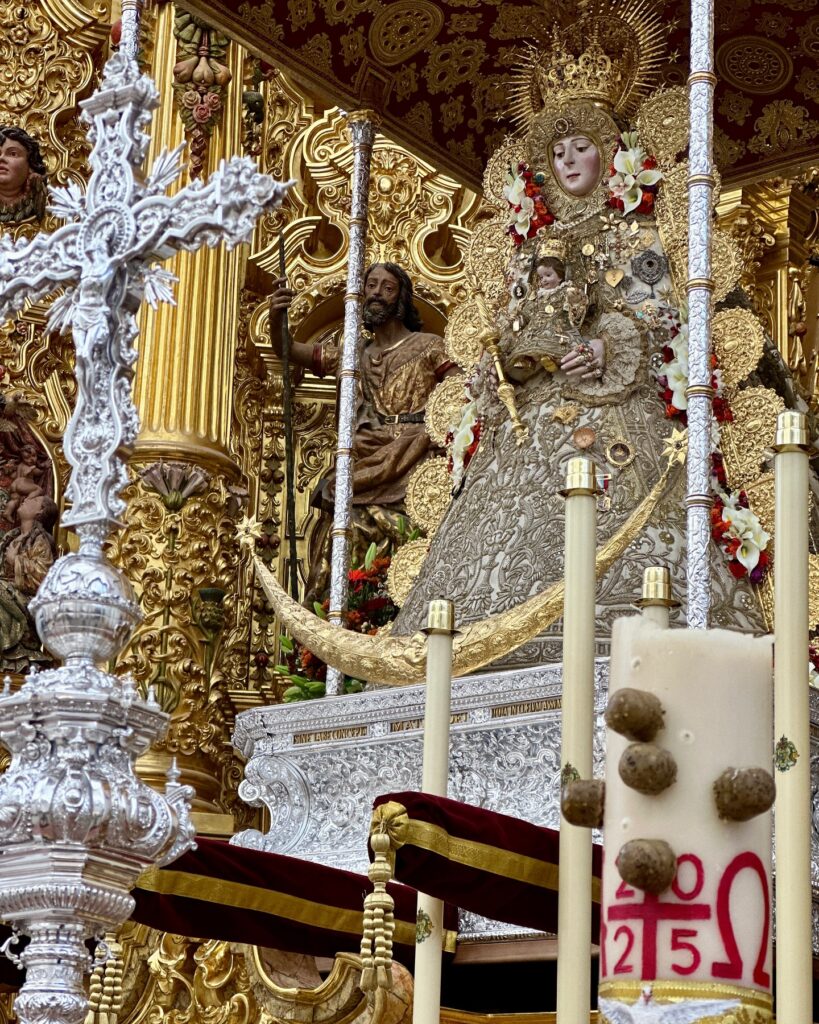 Así amanece hoy la Patrona de Almonte, entronizada en su paso.