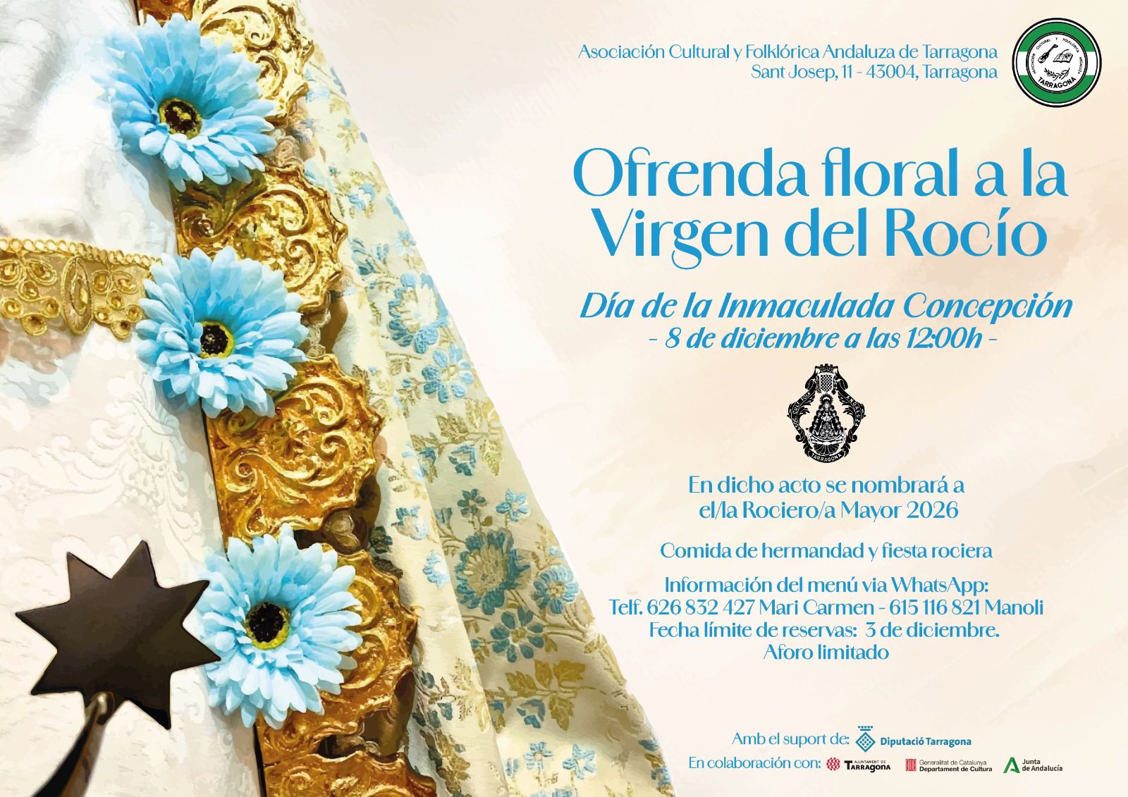 OFRENDA FLORAL ANTE LA IMAGEN DE NTRA. SRA. DEL ROCÍO y nombramiento Rociero/a Mayor 2026 con motivo del Día de la Inmaculada Concepción.