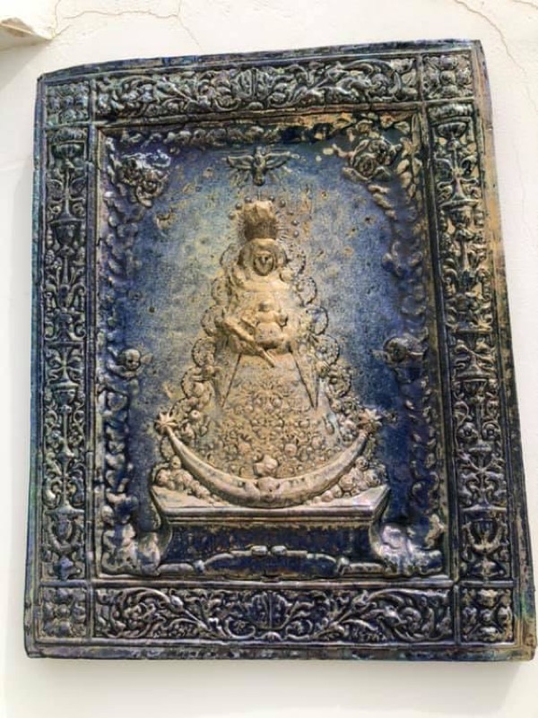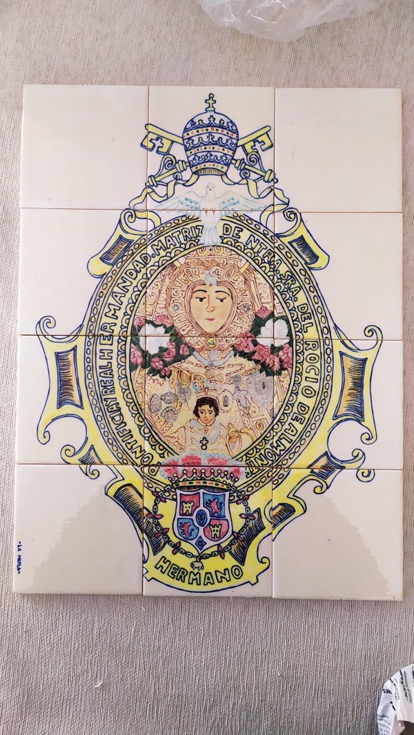 Un trabajo realizado y muy orgulloso de él,para el rocio de alguien de almonte,a mediados de la década del 2000 trabajando codo con codo con el amigo ya fallecido Antonio Barreiro,el los 143 azulejos y yo el hierro,con una altura de 3,05 mts,fue todo un reto colocarlo,pero así quedo. José M. Díaz Regino