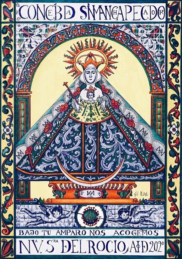 Te invitamos a subir a tus redes sociales estas expresiones sencillas de piedad popular y que, a modo de invocación a la Santísima Virgen, sirva para propagar un mensaje positivo, de esperanza y de confianza. Sólo una imagen del azulejo y, si se sabe, su autoría, taller y fecha de realización, con la invocación: «ROCÍO, ORA PRONOBIS».