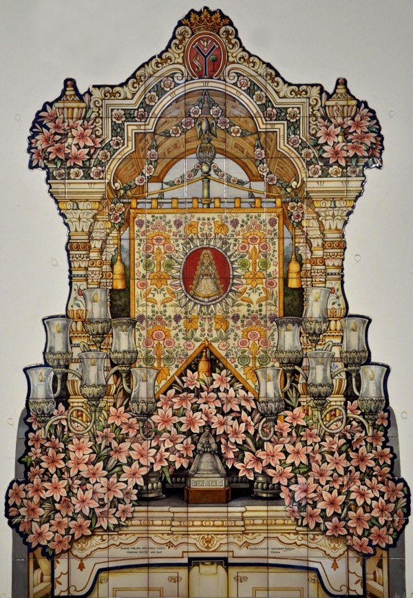 Se encuentra en la Hacienda Los frailes de San Alberto, de Los Palacios. Data de 1920, fue pintado por Manuel García Montalván y se realizó en sus talleres Montalván de Triana. En él aparecen escenas de distintas apariciones de la Virgen y destaca por su originalidad. Pedro Rodríguez Bueno