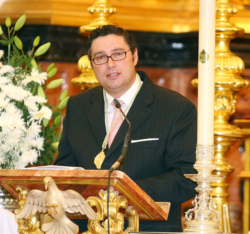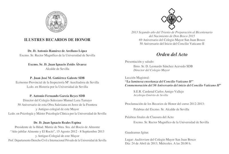 Beca de Honor del CMU San Juan Bosco de Sevilla  al Presidente de la Hdad. Matriz, Don Juan Ignacio Reales Espina