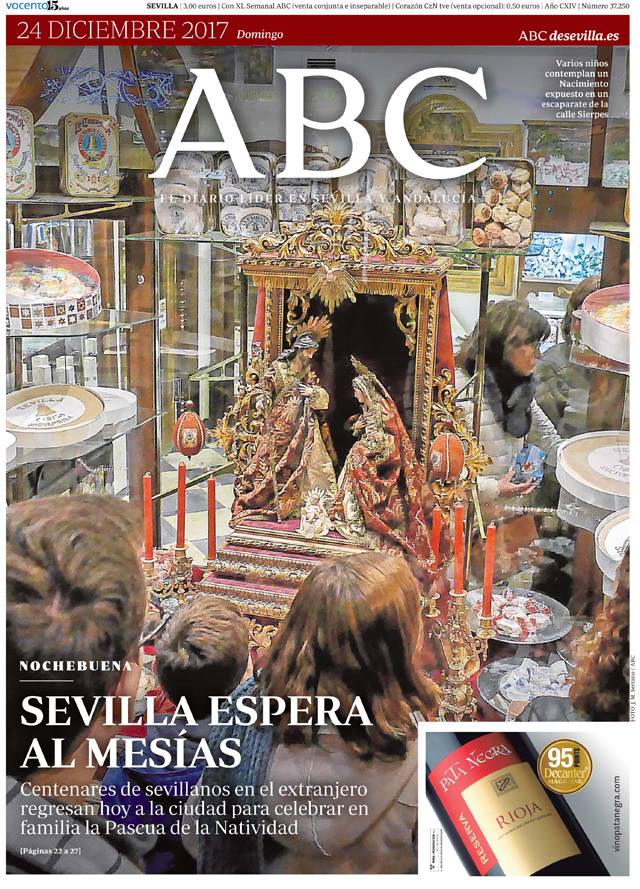 Portada del ABC con el Belén de Vicente en su escaparate.