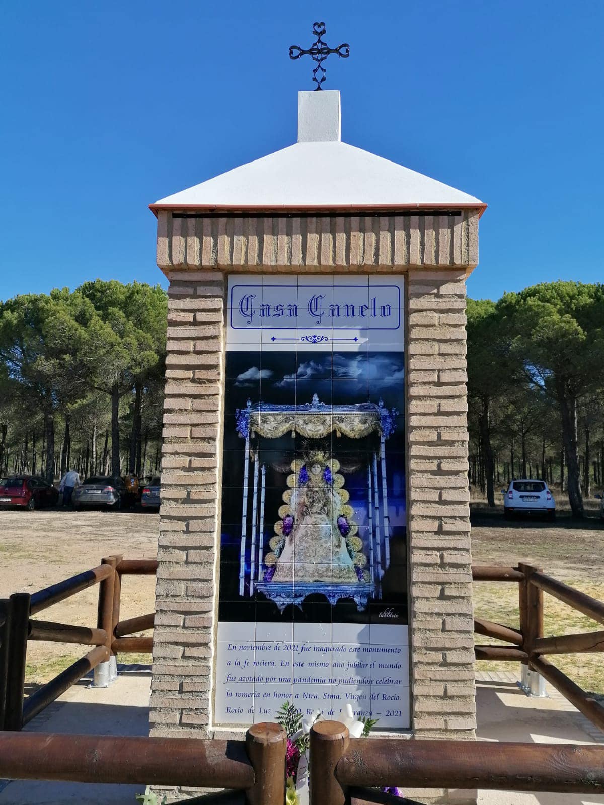 El monumento consiste en un monolito con la imagen de la Virgen en una cara; el nombre de las hermandades con sus medallas en la posterior y en los laterales, textos de la fe rociera. Su ubicación será la explanada conocida como Casa del Canelo, sitio muy venerado por los rocieros de las hermandades que en el camino de vuelta coincidimos para el rezo del Ángelus, oraciones, abrazos, recogimiento y al final… mucha alegría.