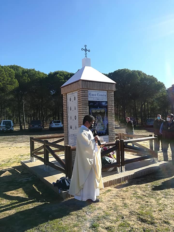 Esta mañana hemos estado presente en el acto de bendición de un monolito en la Casa del Canelo, en el camino de Bonares, una iniciativa promovida por las hermandades que transitan por estos senderos cada primavera: Niebla, Villarrasa, Lucena, Valverde, Trigueros, Badajoz, Bonares y Rociana.
