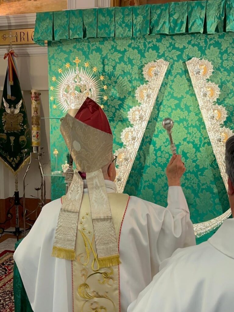 Galería de imágenes correspondientes a la bendición y presentación de los nuevos atributos de la Virgen del Rocío.