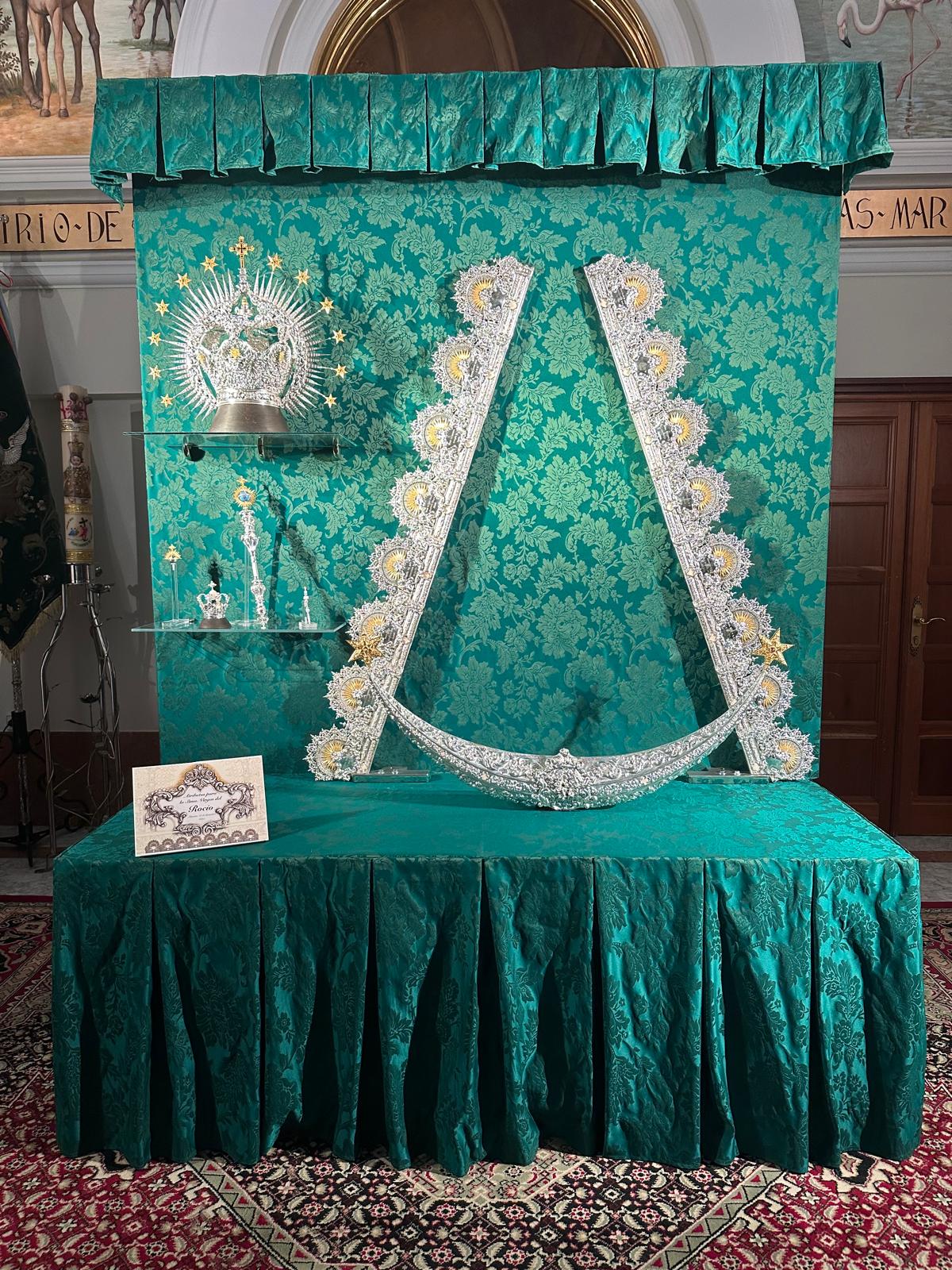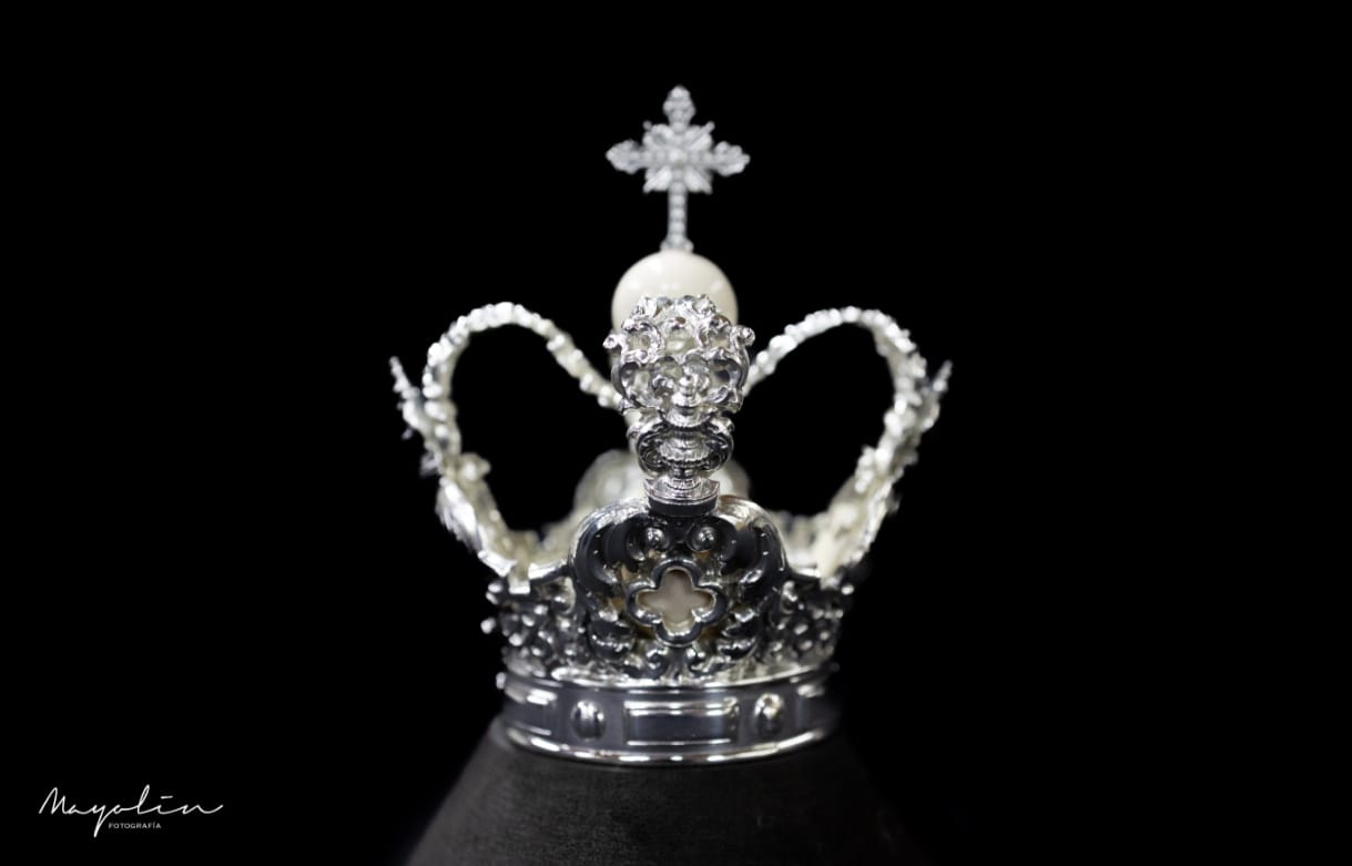 • Corona de la Virgen, ha sido sufragada por la familia, Morales Jaworska y sus padres, Andrés y Rosa. De estilo clásico, está inspirada en la corona de la Coronación y ejecutada en plata, con estrellas y cruz doradas, enriquecidas con topacios, escudos dorados y un centro en forma de antorcha con la llama de Pentecostés.