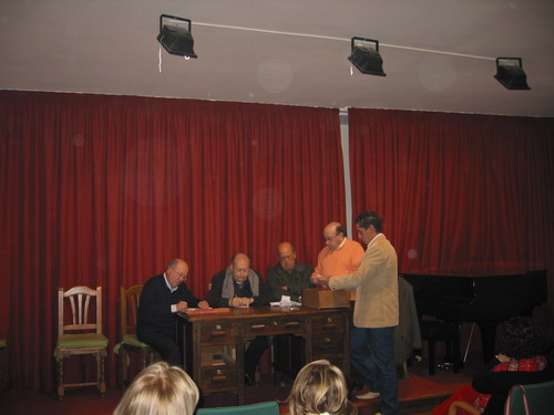El Secretario, Juan Martín tomando nota de las papeletas de votación, Don Gonzalo Huesa, Hno. Mayor en funciones, Antonio Martín (hermano con más edad) e Israel (hermano con menos edad).