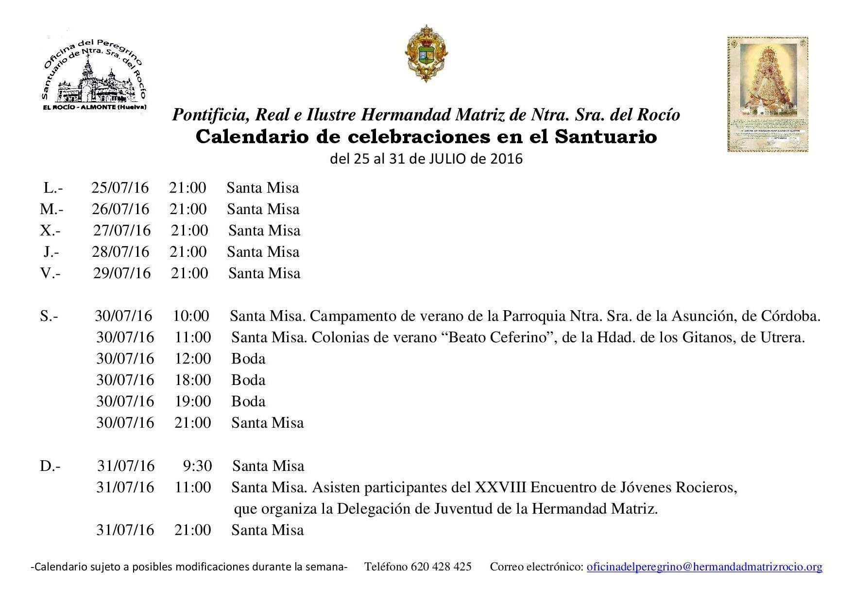 El calendario de celebraciones del 1 al 7 de agosto de 2016, no se a publicado esta semana.