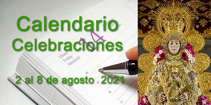 Calendario de celebraciones para la semana del 2 al 8 de agosto, en la Parroquia de Ntra. Sra. de la Asunción y en el Santuario de Ntra. Sra. del Rocío.