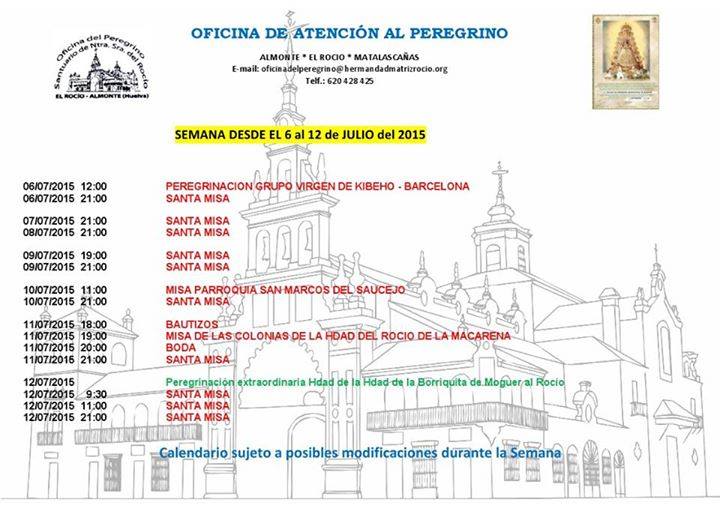 Calendario pergrinaciones 6 al 12 de julio 2015