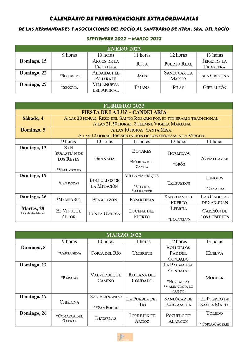 La Hermandad Matriz da a conocer el calendario de peregrinaciones extraordinarias al Santuario del Rocío