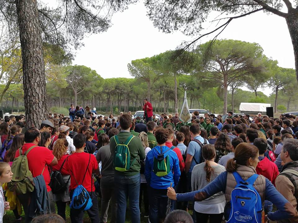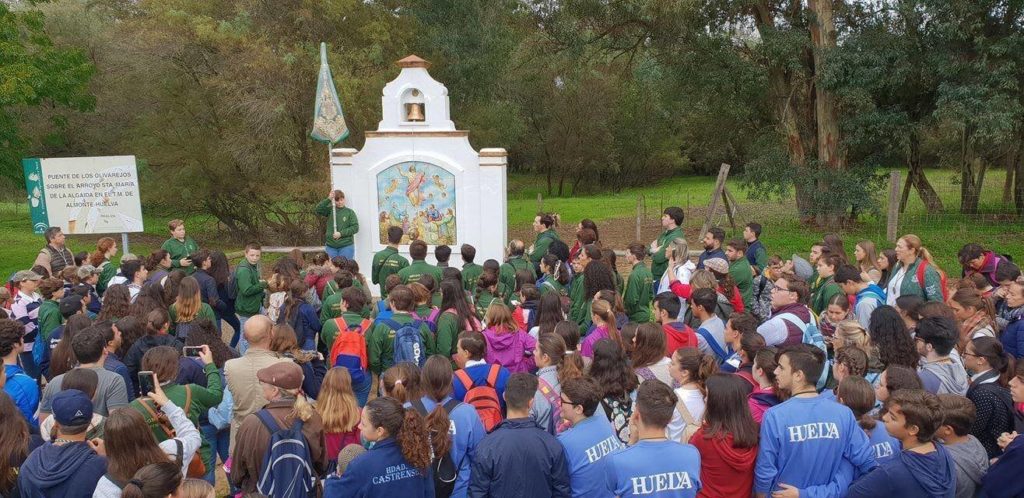 Camino de los jóvenes rocieros de Almonte de otras Filiales al Rocío. Rezo del Ángelus y conferencia sobre la Coronación de la Virgen del Rocío, por Santiago Padilla.