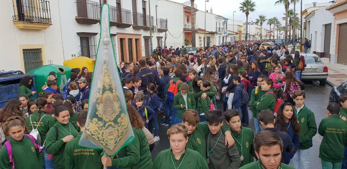 La peregrinación estará encabezada por el guión de la Hermandad Matriz, el cual durante el camino lo irán llevando todos los jóvenes participantes de las hermandades del Rocío.