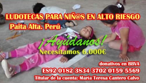 Este año irá a Perú, donde Ella ha dirigido su mirada y nos ha encaminado a tratar de paliar las muchas necesidades que tienen y que desgraciadamente, debido a las terribles riadas que les afectaron de pleno el pasado invierno, se han incrementado mucho más; siendo los mas perjudicados los niños, a quienes vamos a tratar de dulcificar su infancia.