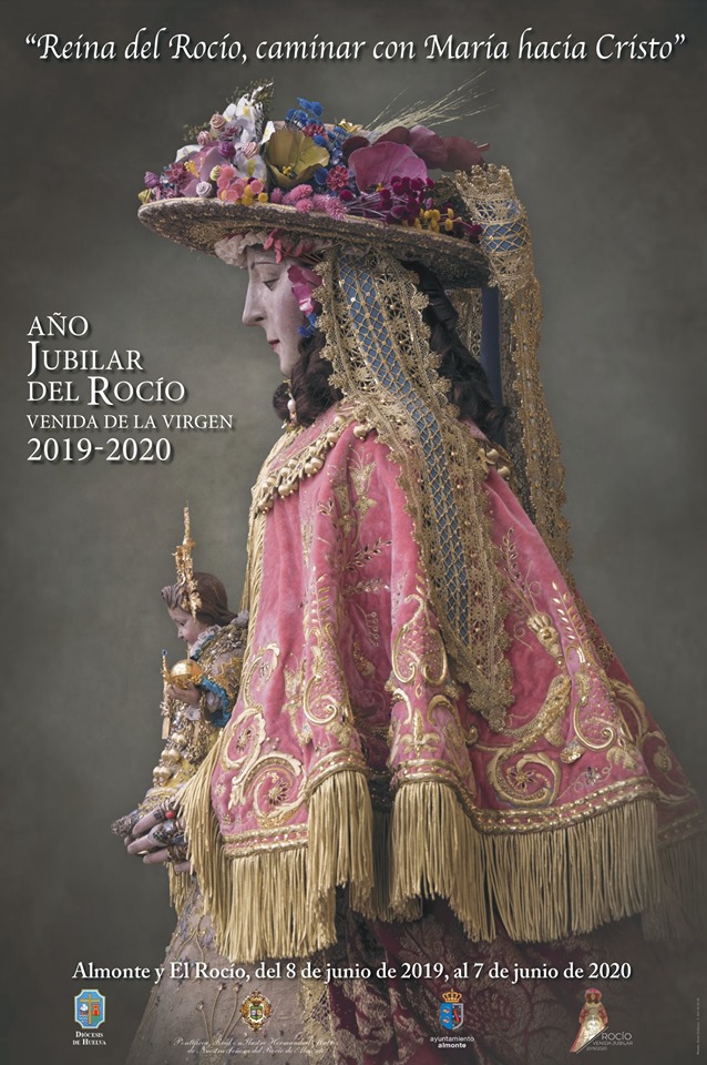 Esta tarde, viernes 2 de agosto de 2019, se ha presentado en el patio de la Casa Hermandad, en Almonte, el logo del Año Jubilar del Rocío y de la Venida de la Virgen, la tarjeta postal prepagada que la Hermandad Matriz ha realizado con Correos con el cartel del Traslado, obra del pintor Fernando Vaquero, el cartel del Año Jubilar y el matasellos turístico, conmemorativo de estas efemérides.
