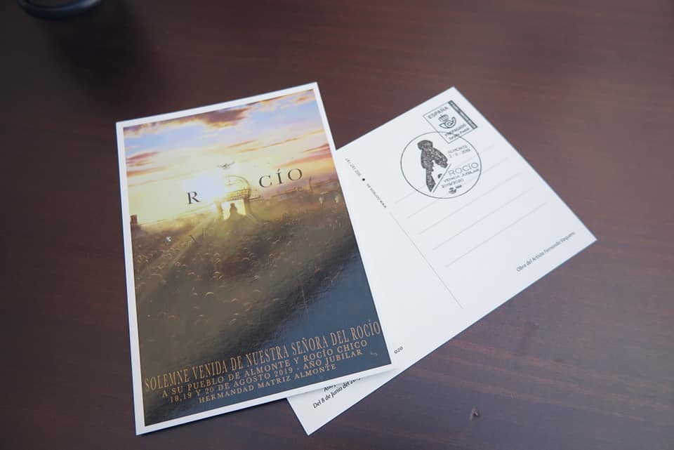 La Hermandad Matriz realiza una tarjeta postal de Correos con motivo de la Venida de la Virgen, También se ha presentado el cartel del Año Jubilar y un matasellos turístico de la Oficina de Correos de Almonte.