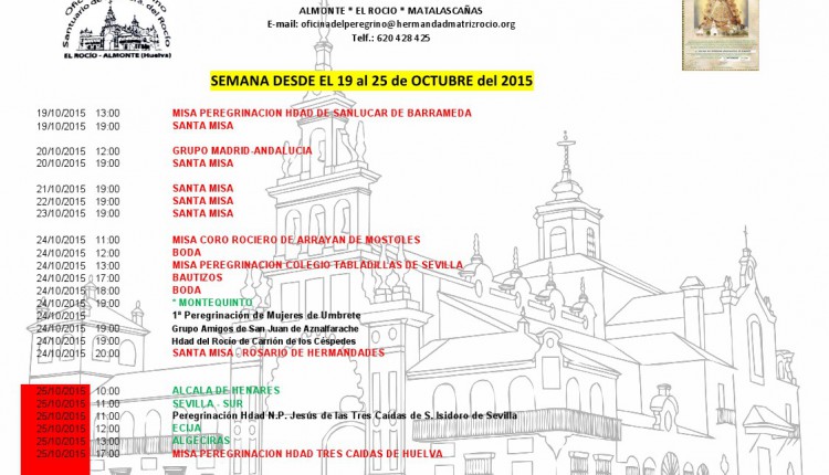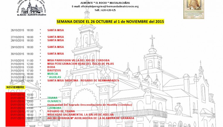 Calendario de Celebraciones en el Santuario del Rocío del 24 al 30 de octubre de 2016