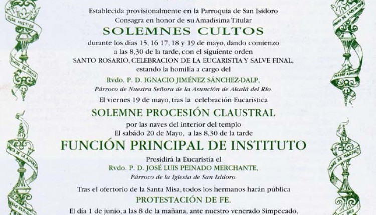 La Fervorosa y Humilde Hermandad de Nuestra Señora del ROCÍO DE ALCALÁ DE HENARES, filial de la de Almonte, establecida canónicamente en el Convento de …
