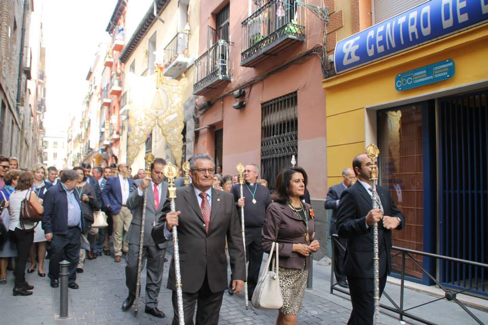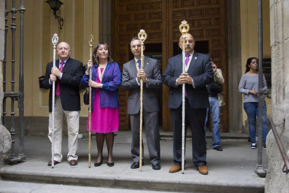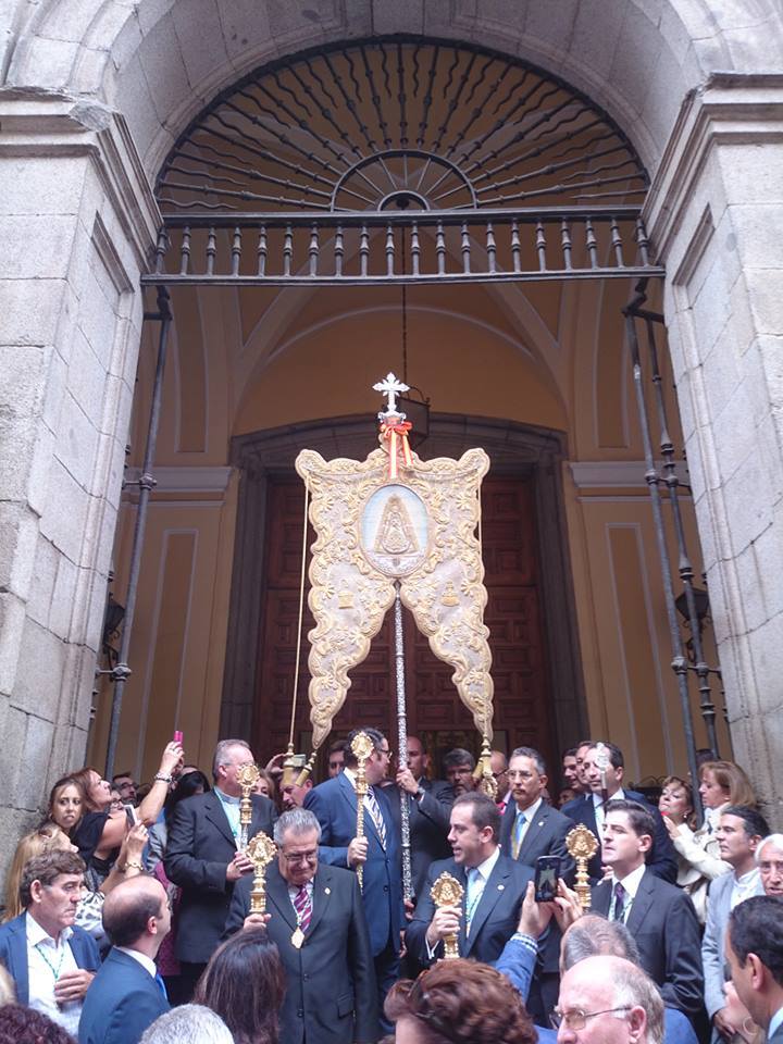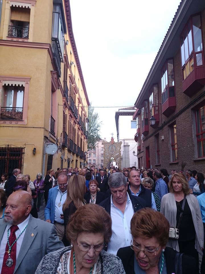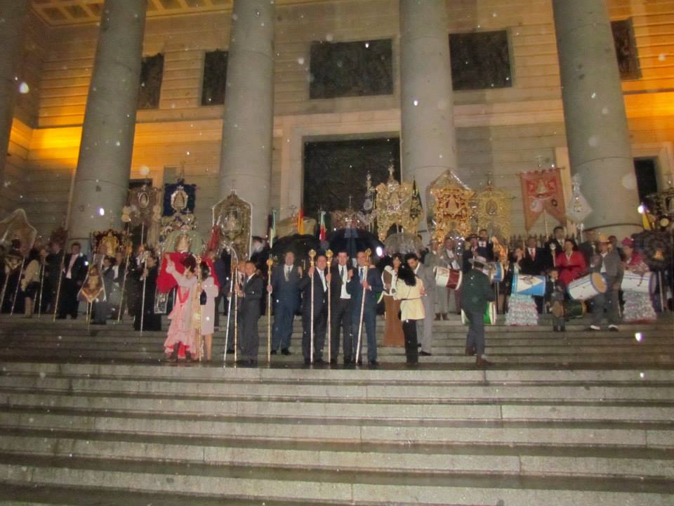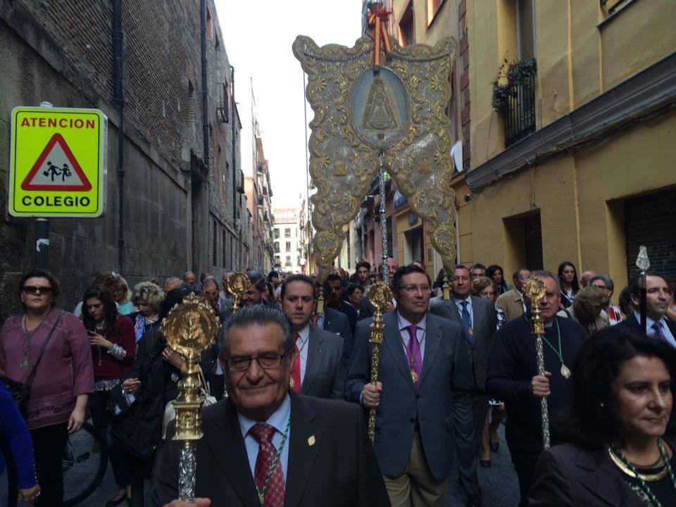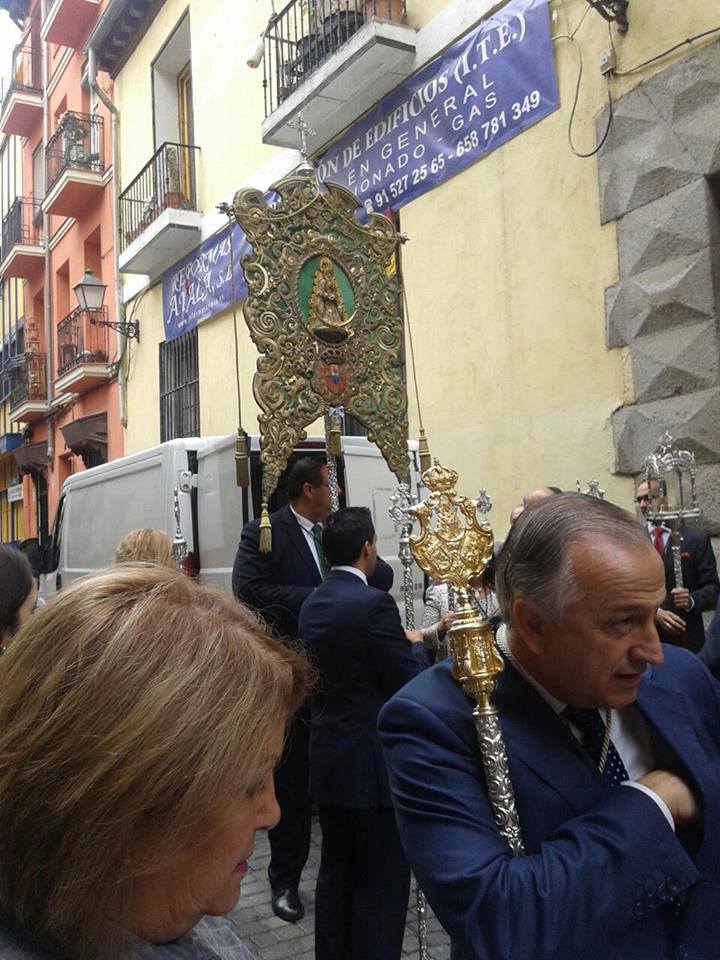 A las 17 h, se iniciará el rezo del Santo Rosario y dará comienzo la Magna Procesión hasta la Santa Iglesia Catedral de Sta. María la Real de la Almudena, con los Simpecados e insignias de las Hddes. participantes, por riguroso orden, por las calles del Madrid de los Austrias, dando público testimonio de nuestra devoción a la Santísima Virgen María en la preciosa advocación del Rocío, en acción de gracias por los frutos del Año Jubilar, y haciendo del Rocío, un «camino de Esperanza”, según las indicaciones de S.S. el Papa Francisco, que invita a salir para dar testimonio de una esperanza que no defrauda.