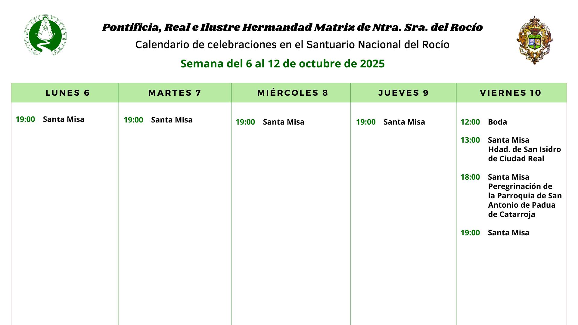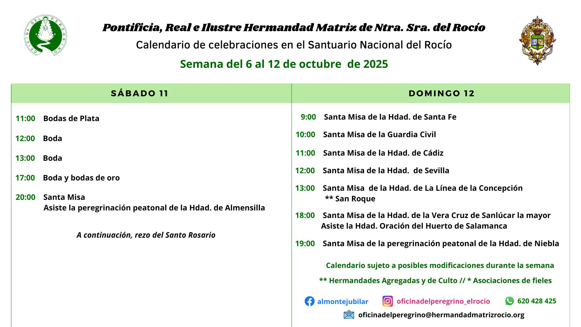 Celebraciones y Actos de Hermandades del Rocío en la semana del 6 al 12 de Octubre de 2025.