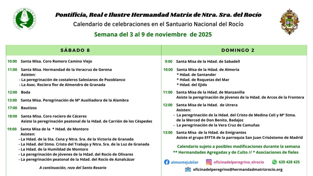 Celebraciones 8 y 9 de noviembre de 2025 de las Hermandades del Rocío