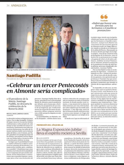 3.- Estamos trabajando en la hipótesis de que haya Romería en 2022, sin saber en estos momentos con certeza con qué limitaciones podrá celebrarse y ojalá que con ninguna.En manos de la Virgen lo ponemos.
