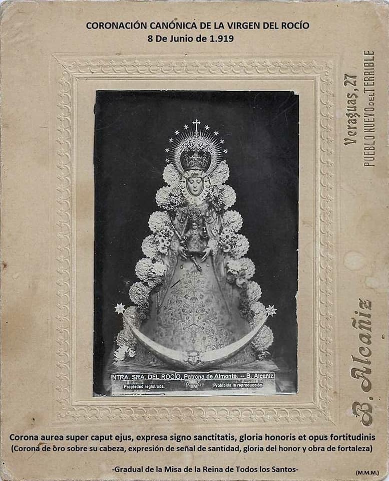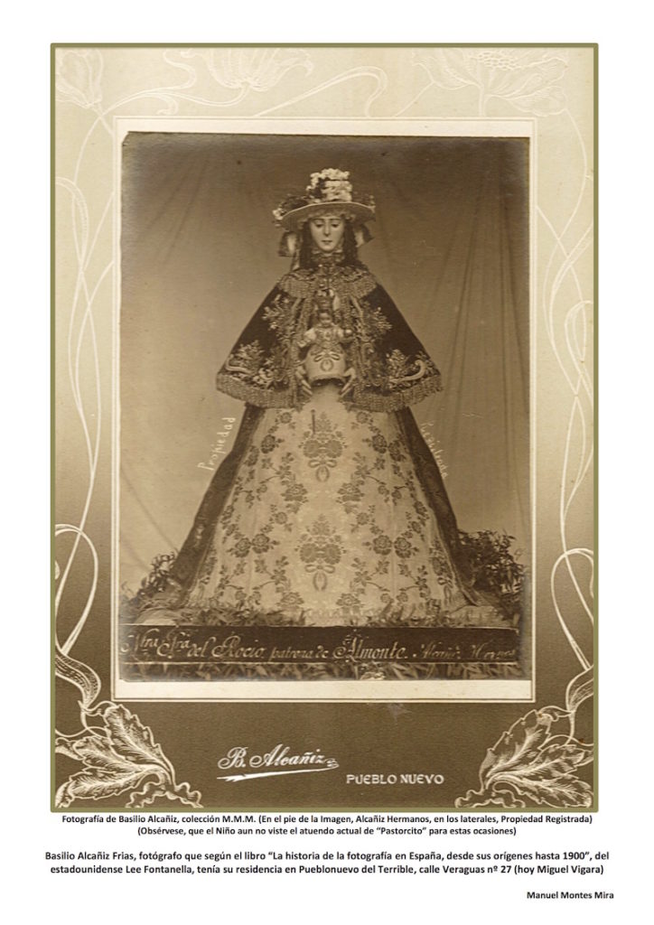 Fotografía de la Virgen del Rocío “vestida de Pastora”, en el Centenario del Rocío Chico de 1913, y asimismo datada en Pueblonuevo del Terrible