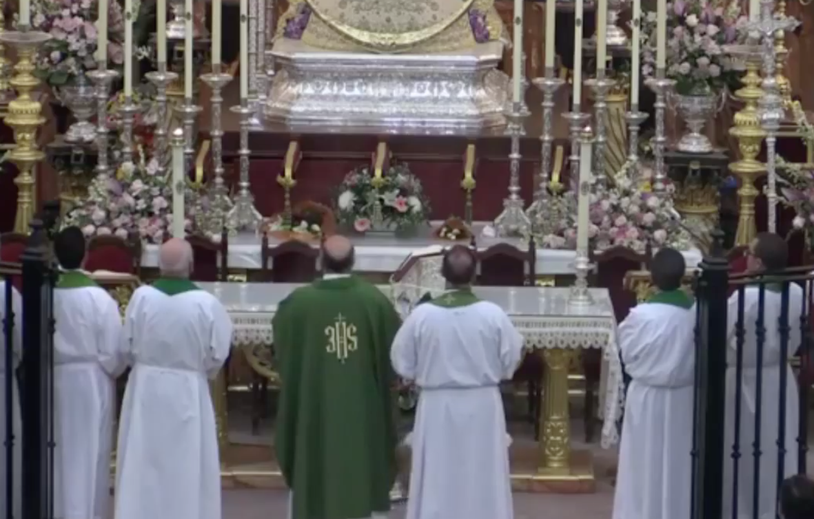 SALVE ROCIERA al final de la MIsa de Acción de Gracias por el Centenario de la Coronación Canónica de la Virgen del Rocio, interpretada por la Coral Polifónica de Isla Cristina que fue la misma que acompañó con sus cantos la visita de San Juan Pablo II a este Santuario hace 25 años.