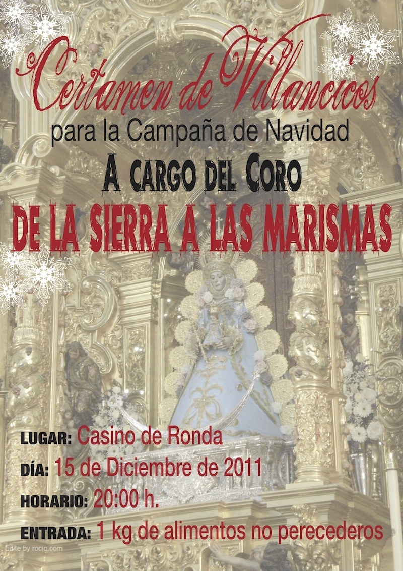 Cartel del Certamen benéfico de Villancicos que el Coro «De la Sierra a las Marismas» dará el Jueves a las 8 en el Casino de Ronda.