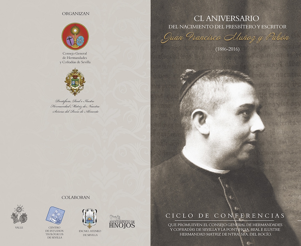 El miércoles, 14 de diciembre, se celebró la primera conferencia que hacemos, con motivo del CL aniversario del nacimiento del presbítero y escritor, Juan Francisco Muñoz y Pabón, que va a tener lugar, a las 19,30 horas, en el Centro de Estudios Teológicos de Sevilla, en la sala Juan Guillén (Avda. Cardenal Bueno Monreal, S/n), a cargo del profesor, doctor, D. Manuel Martín Riego, profesor de historia de la Iglesia en el Centro de Estudios Teológicos de Sevilla. Doctor en geografía e historia y licenciado en historia de la Iglesia, bajo el título, “La carrera eclesiástica de Muñoz y Pabón en el seminario diocesano del último tercio del siglo XIX”, organizada por el Consejo General de Hermandades y Cofradías y por la Pontificia, Real e Ilustre Hermandad Matriz de Ntra. Sra. del Rocío de Almonte, con la colaboración del Centro de Estudios Teológicos de Sevilla.