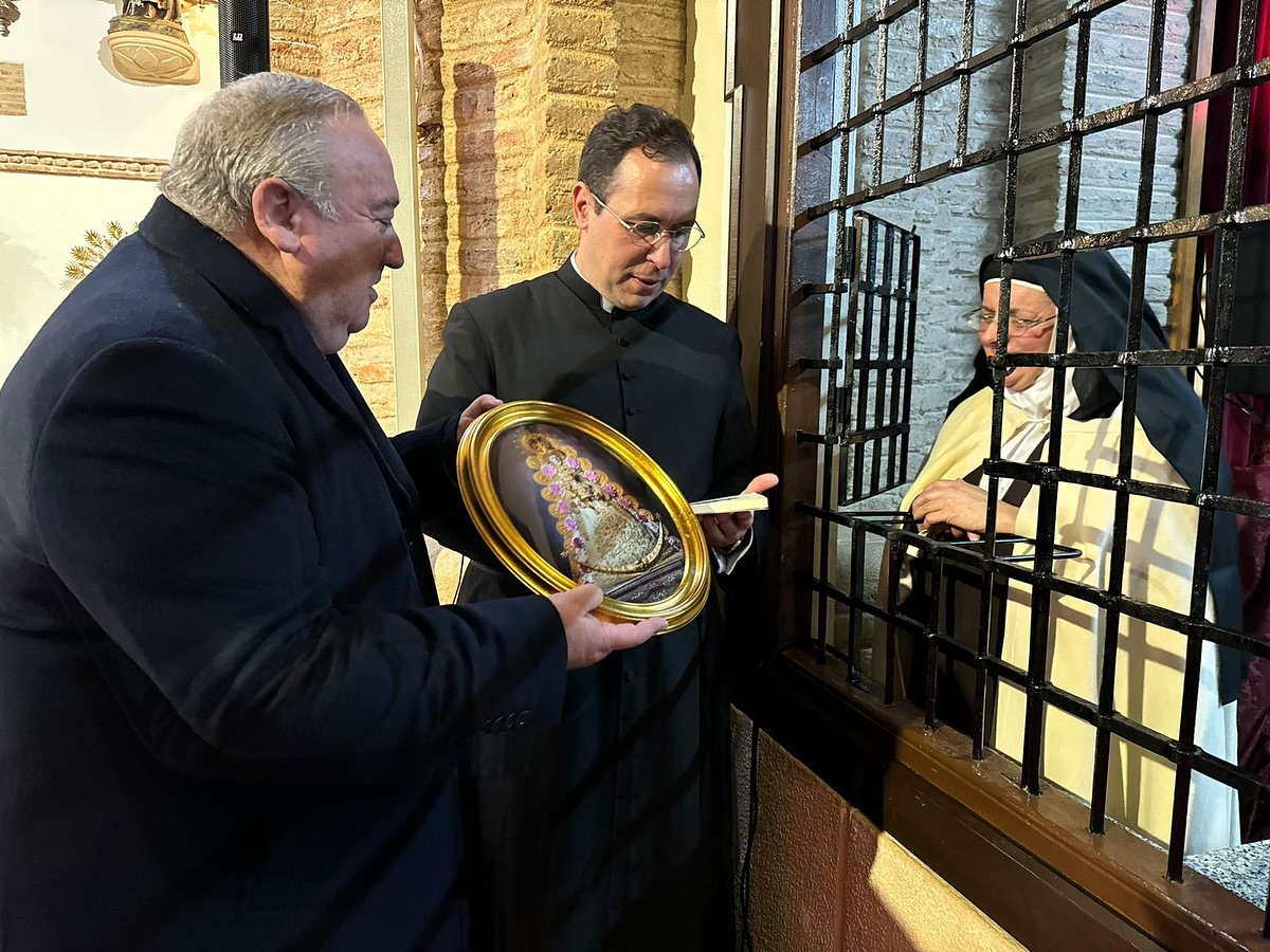 Nuestro Delegado de Formación, Antonio Ramos, se ha hecho presente en este acontecimiento, celebrado con motivo del Centenario de la fundación de este Instituto de Clausura en Ronda. En la imagen, el momento en el que se ha hecho entrega de unos presentes a la Superiora de la Comunidad, acompañado del Rvdo. D. Salvador Aguilera, rondeño y Oficial de la Santa Sede y Antonio Martín, Hermano Mayor de la Hermandad del Rocío de Ronda.