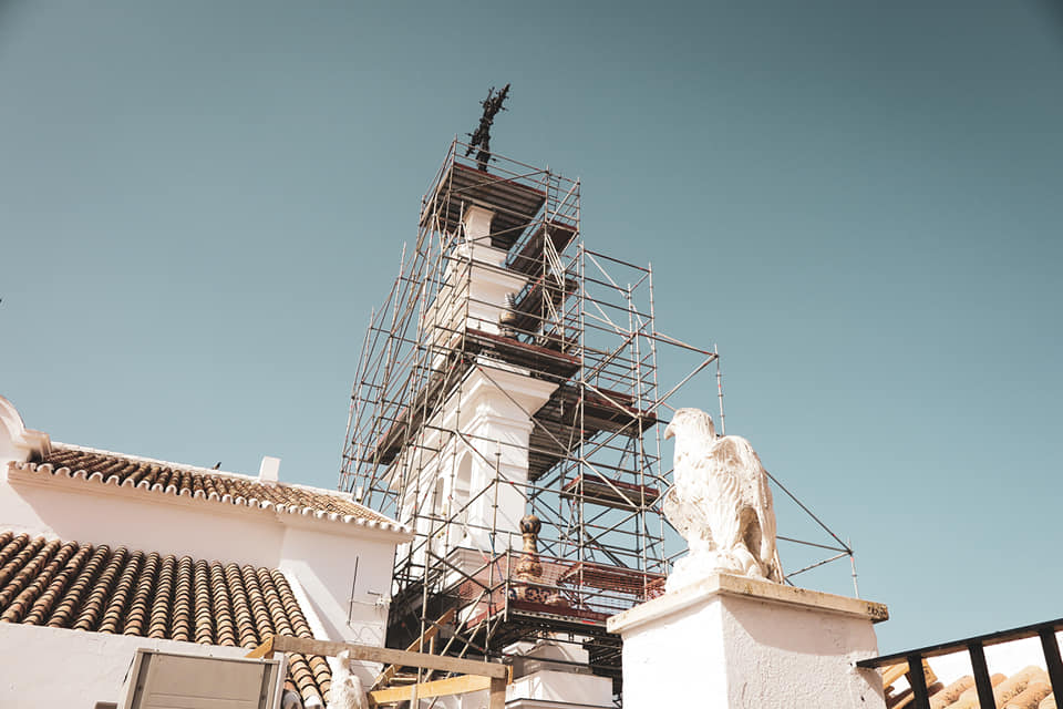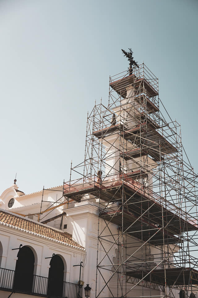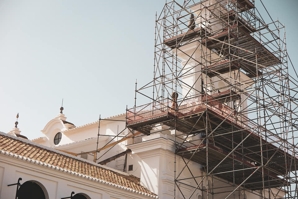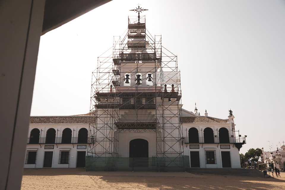 Uno de los proyectos más ambiciosos de la Hermandad Matriz, durante la estancia de la Virgen del Rocío en Almonte, era el de la reposición de las piezas cerámicas del exterior del Santuario. Esta semana han comenzado a retirarse las actuales, que tras más de 50 años, presentaban un importante deterioro.