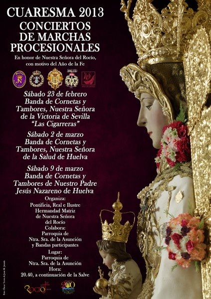 Dentro de la programación especial del Año Jubilar Rociero, la Hdad. Matriz organiza tres grandes conciertos de marchas procesionales, durante la Cuaresma, a cargo de tres grandes bandas de tambores y cornetas. El día 23 de febrero, tras la Salve, Las Cigarreras de Sevilla, y los días 2 y 9 de marzo, La Salud, y el Nazareno de Huelva.