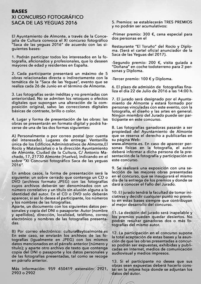 BASES DEL XI CONCURSO FOTOGRÁFICO SACA DE YEGUAS 2016