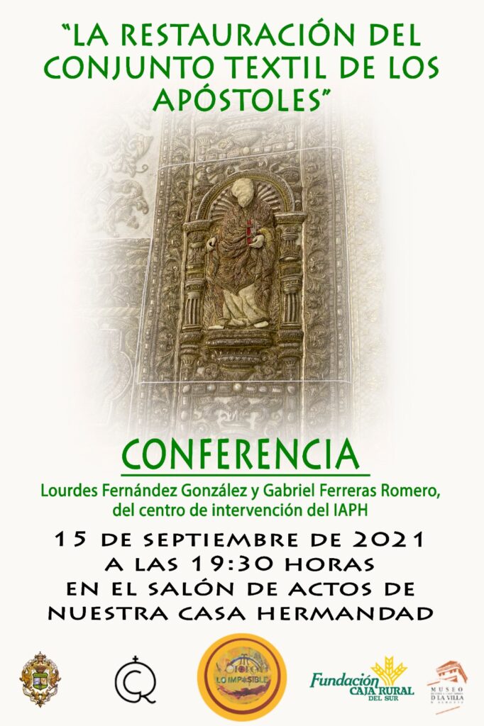 Con motivo de la clausura de la exposición #OtorgaLoImposible, el próximo miércoles, 15 de septiembre, tendrá lugar una charla en la que Lourdes Fernández y Gabriel Ferreras, del Instituto Andaluz del Patrimonio Histórico, analizarán cómo ha sido el proceso de limpieza y restauración del traje de las Hermandades, también conocido como «de los Apóstoles», de la Virgen del Rocío.