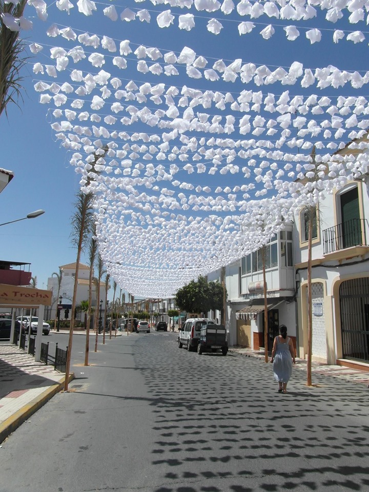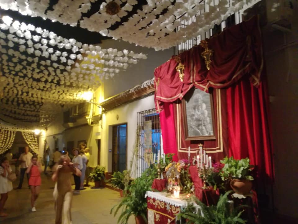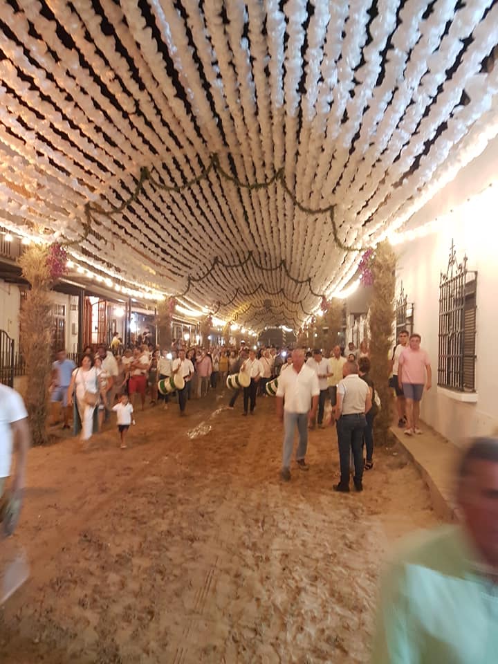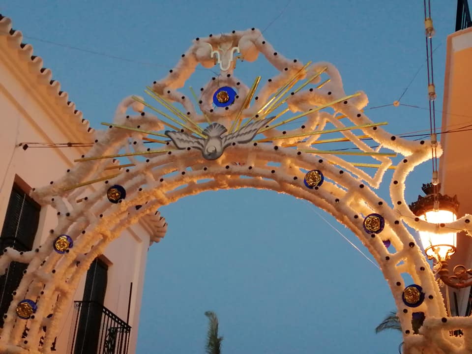 A finales de julio se comenzaron a colocar los primeros palos donde iran forrados con romero y coronados con palmas, de las que esta semana han empezado a colocar las primeras flores blanca de papel de seda, como es costumbre. En la aldea tambien comenzaron a finales del pasado mes con la colocación de palos y guirnaldas de flores.