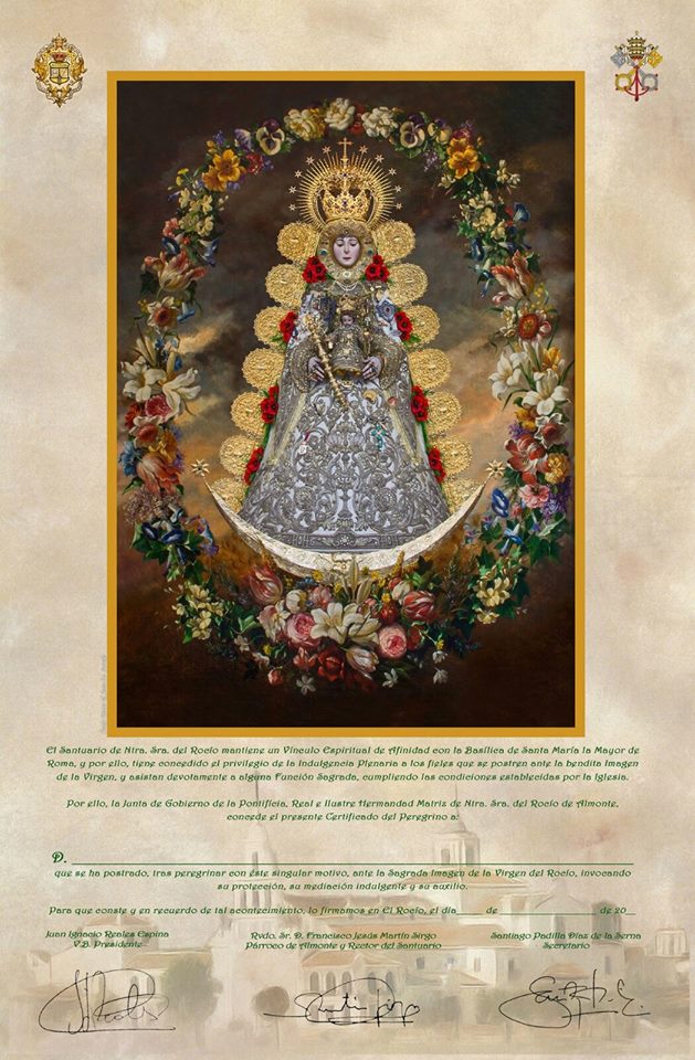 Ya está disponible en la Oficina de Atención al Peregrino del Santuario del Rocío la nueva credencial de Indulgencia Plenaria por un donativo de 2 €.