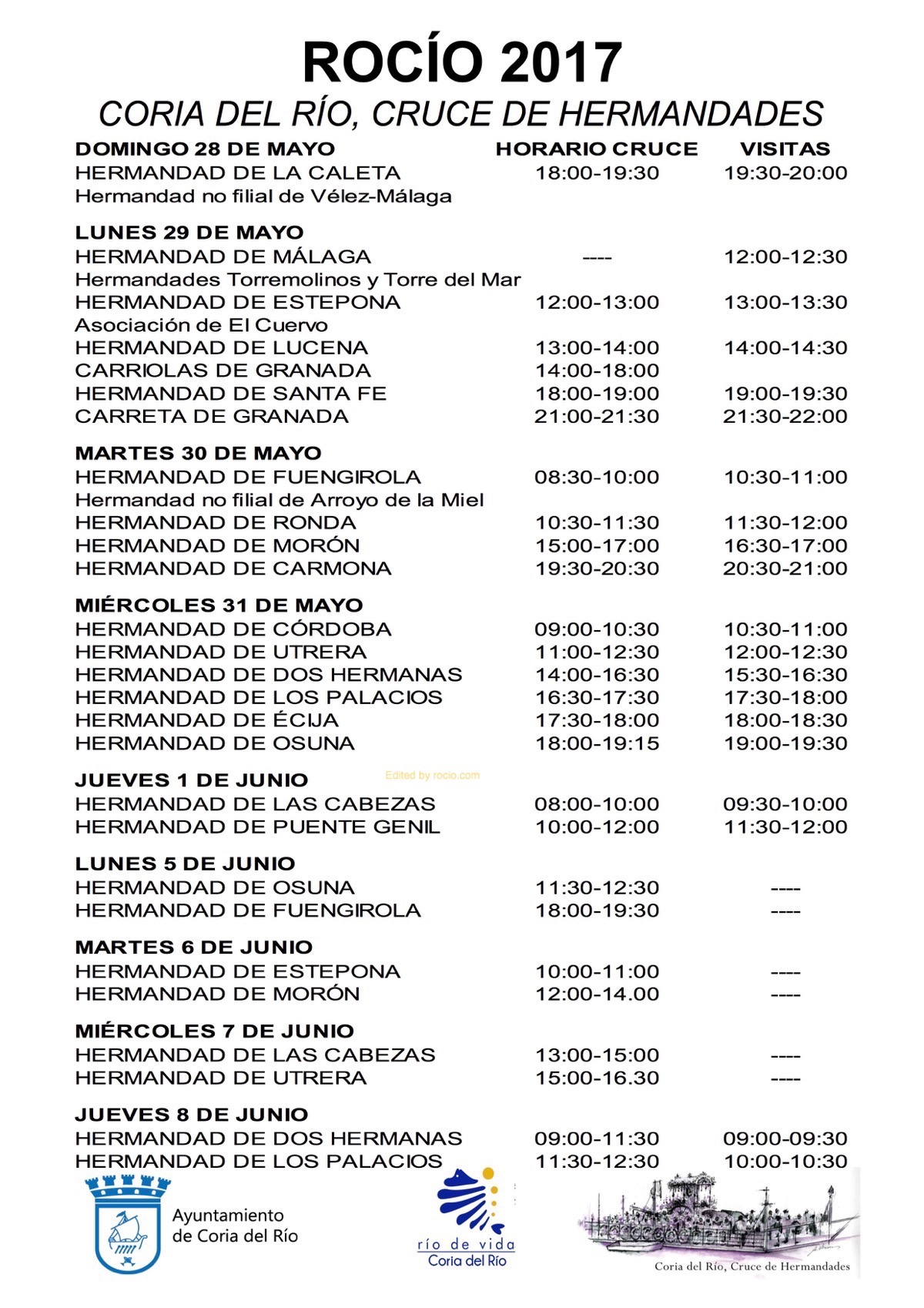 El Excmo. Ayuntamiento de Coria del Río nos envía el horario de Cruce de las Hermandades por Coria del Río en 2017