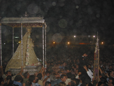 La ermita está a rebosar pero tú te encontrarás solo con Ella, cualquier rinconcito vale para rezar, buscarás en su mirada el sosiego que te serena el alma, notarás como se detiene el tiempo mientras le cuentas sin palabras cuánto la quieres y te sentirás como un hijo ante su Madre.