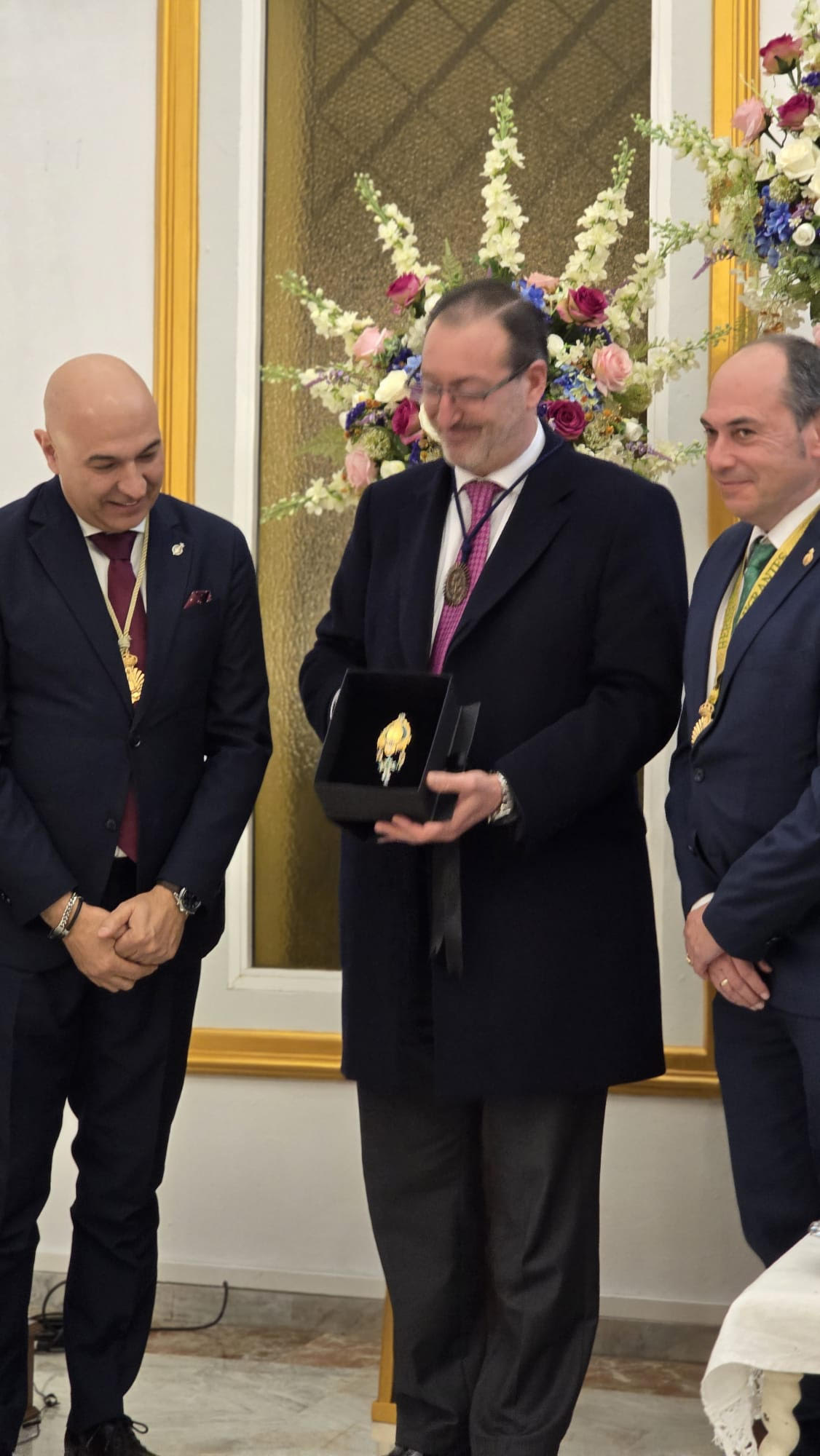 Tras la Santa Misa, el presidente y el hermano mayor de Emigrantes hicieron entrega a Rafael Millán, hermano mayor de la Santa Cruz, de un hermoso broche diseñado por el joyero Morlote, destinado a que María Santísima de Gracia lo luzca en próximas salidas procesionales, como gesto de cariño y fraternidad.