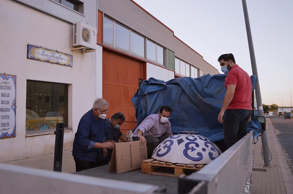 Culminan estos días las obras de la reposición cerámica exterior del Santuario. Aprovechando estas tareas, la semana pasada fue retirada la Cruz de la cúpula, para su restauración. Una intervención que se ha llevado a cabo en los Talleres Anibal García.