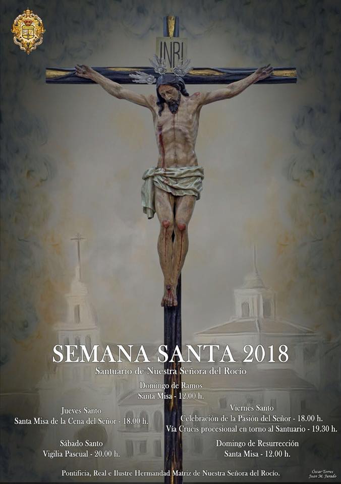 Cartel anunciador de los cultos de Semana Santa, organizados por la Hdad. Matriz en el Santuario del Rocío.
