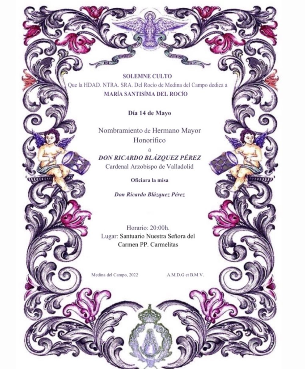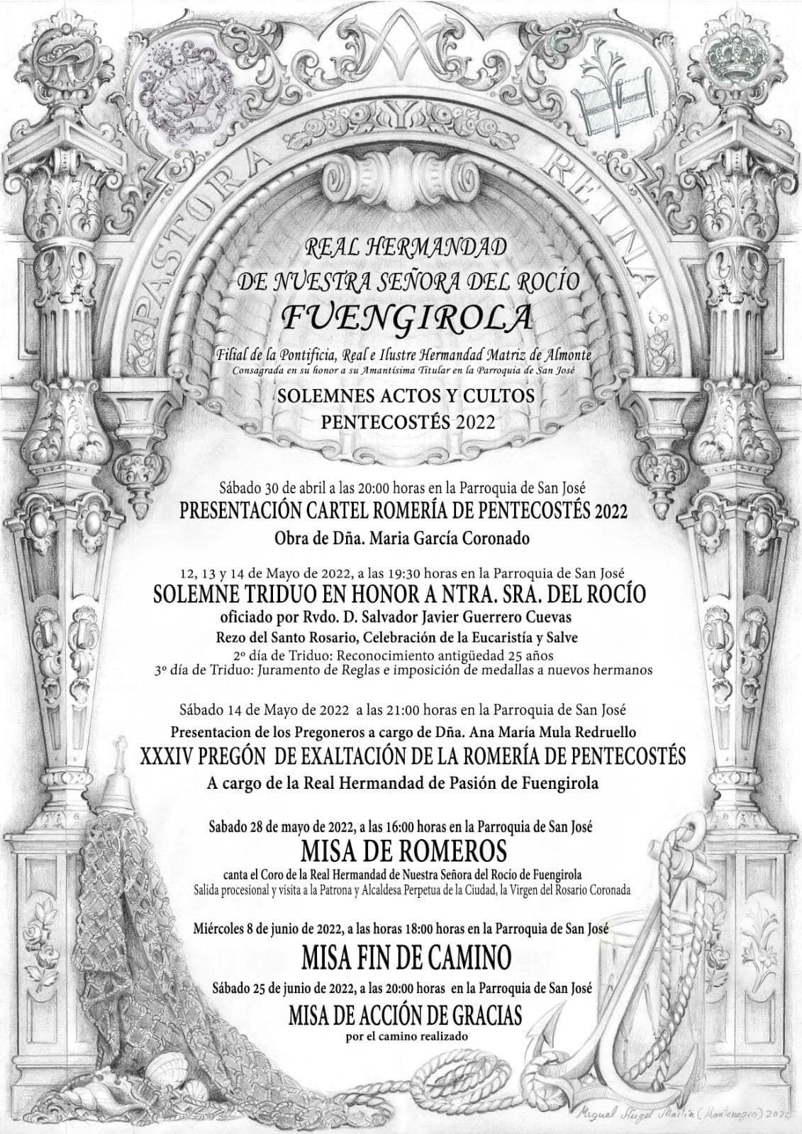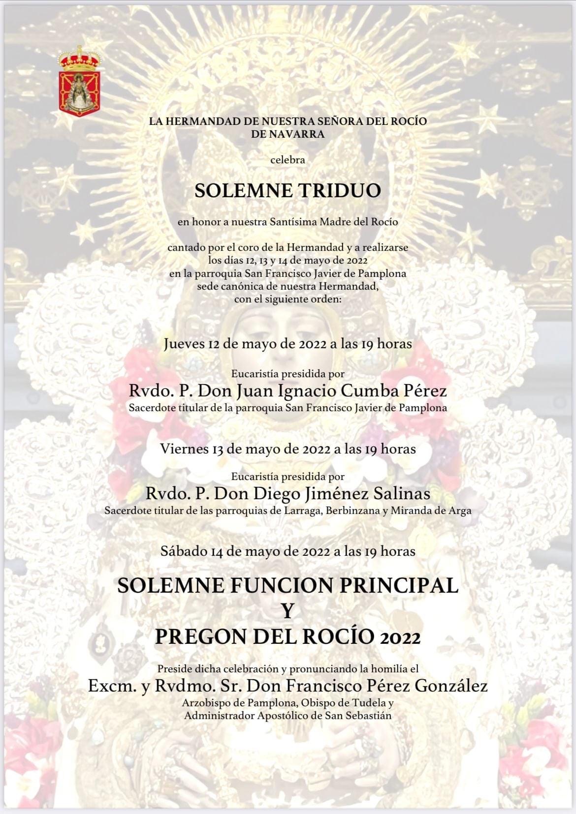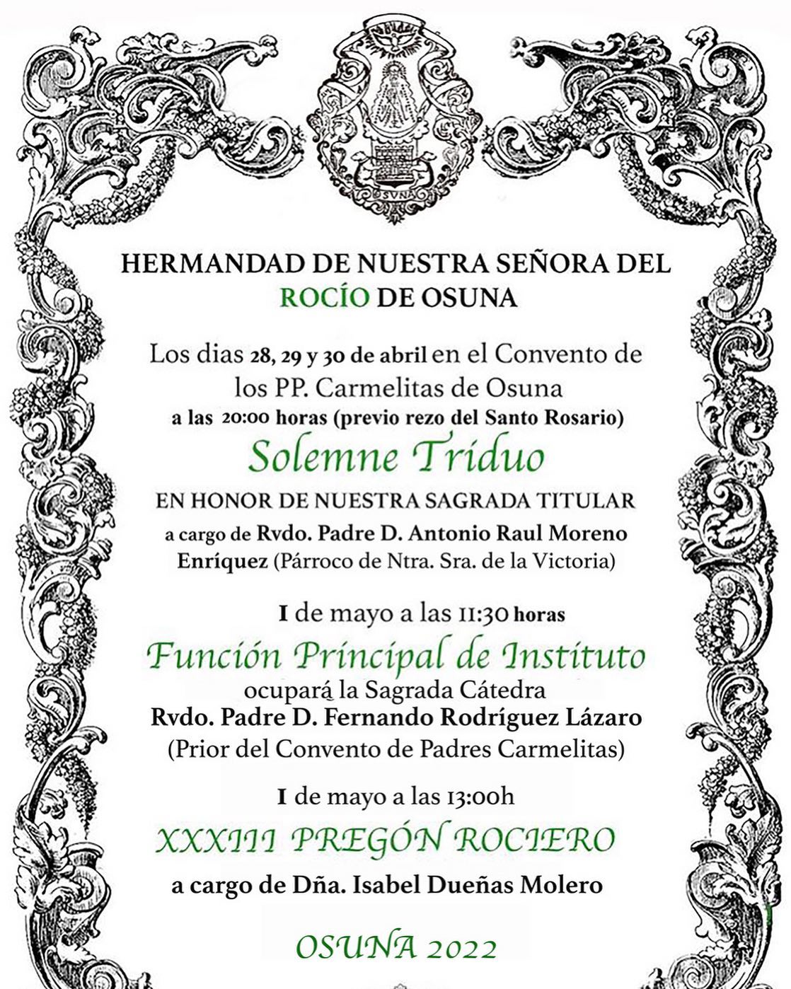 Solemnes Cultos, Novena y Romería que la Pontificia, Real e Ilustre Hermandad Matriz de Ntra. Sra. del Rocío de Almonte, consagra en honor de su venerada titular, María Santísima del Rocío. Patrona desde el año 1653 de la Muy Antigua y Noble Villa de Almonte.