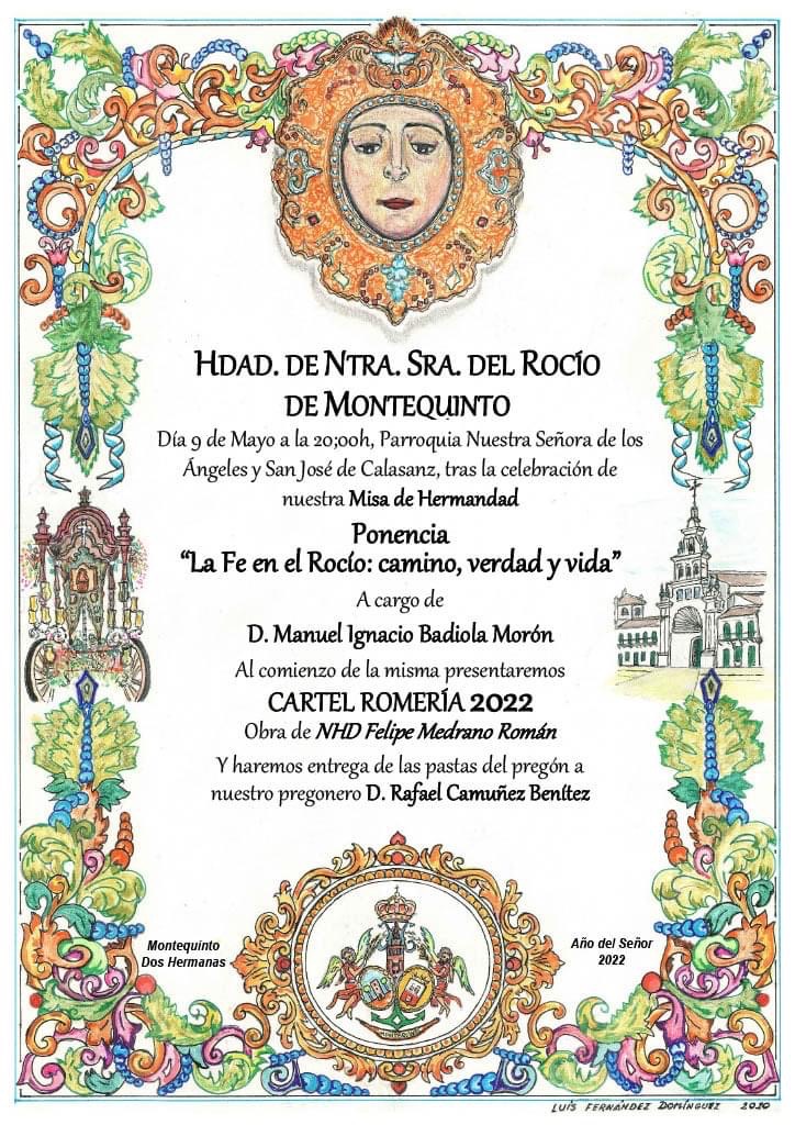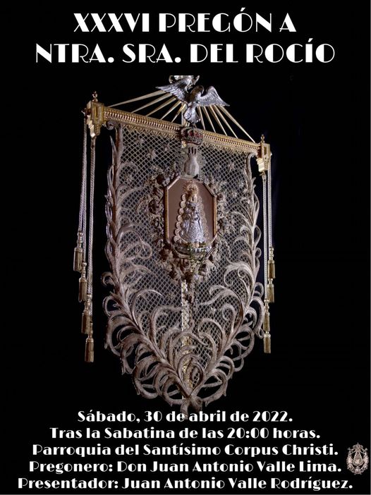Martes, 17 de mayo. Rvdo. P. D. Francisco Miguel Valencia Bando; Párroco de la de Ntra. Sra. de la Asunción de Almonte, Rector del Santuario de Ntra. Sra. del Rocío y Director Espiritual de la Hermandad Matriz de Almonte. Canto: Coro de la Hermandad de Ntra. Sra. del Rocío de Triana.
