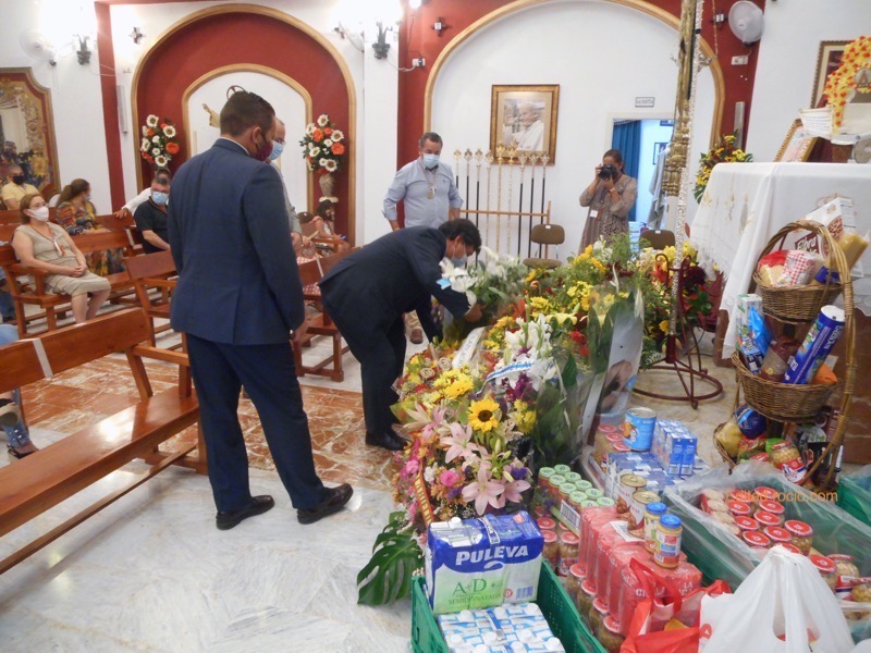 Esta noche de este Rocío diferente contó con la presencia del alcalde de Huelva, Gabriel Cruz, quien depositó un hermoso ramo de flores a los pies del Simpecado e hizo entrega a la hermandad de una hermosa bandera de Huelva “en uno de los momentos más difíciles de los rocieros, aunque también uno de los más exigentes”, debido a la actual crisis sanitaria que está viviendo el mundo debido al Covid-19 y que está haciendo que este Rocío lo estemos viviendo desde la fe y la esperanza.