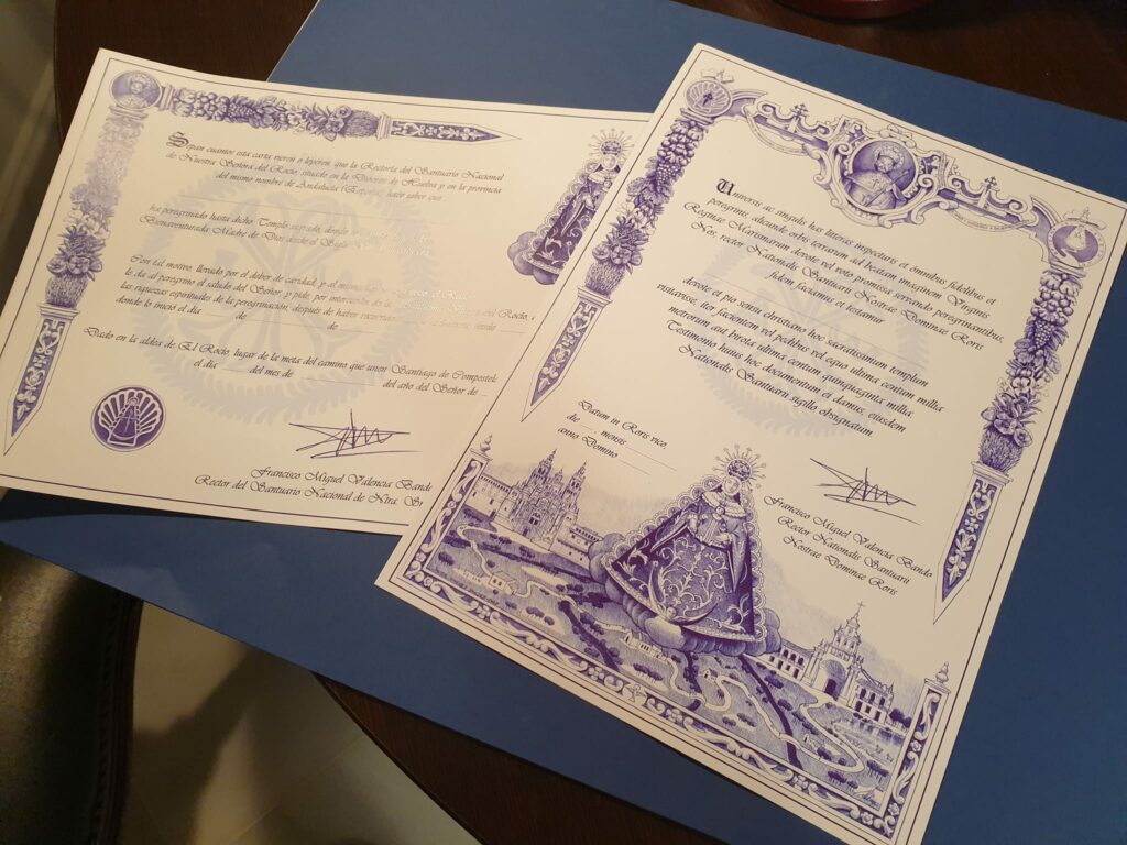 Esta tarde hemos presentado los certificados que desde la Oficina de Atención al Peregrino del Rocío se expedirán a quienes realicen el Camino de Santiago al Rocío o viceversa. Una iniciativa de la Asociación Amigos del Camino del Rocío a Santiago de Compostela en la que nos sumamos desde esta oficina, que sirve de herramienta fundamental para los peregrinos que quieren visitar a la Virgen.