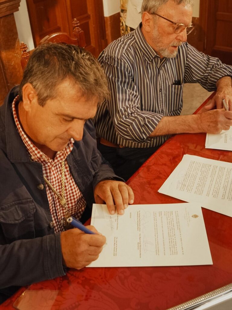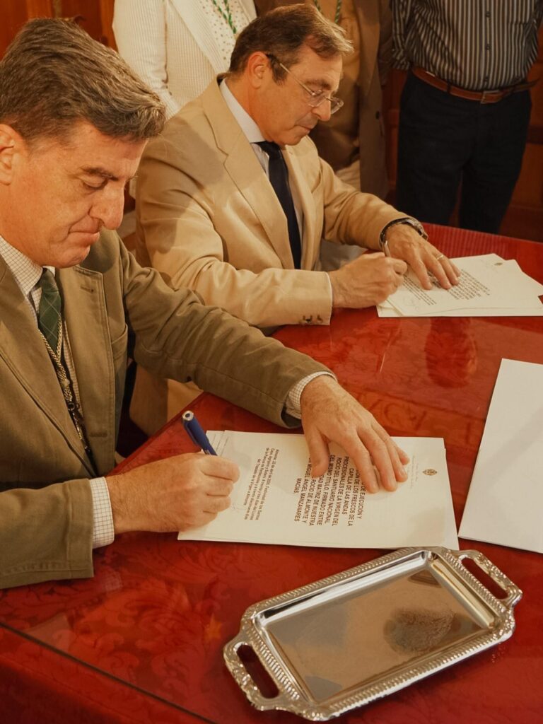En el acuerdo han firmado, además, como testigos, el hermano mayor de Almonte, Juan de los Santos Cano, y el artista Juan Manuel Núñez Báñez.