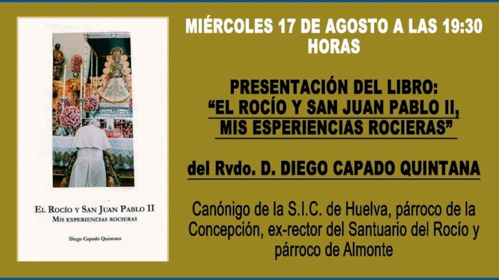 Arrancamos el próximo miércoles 17 de agosto, a las 19,30 horas con la presentación del libro del Rvdo. D. Diego Capado Quintana, «El Rocío y San Juan Pablo II».